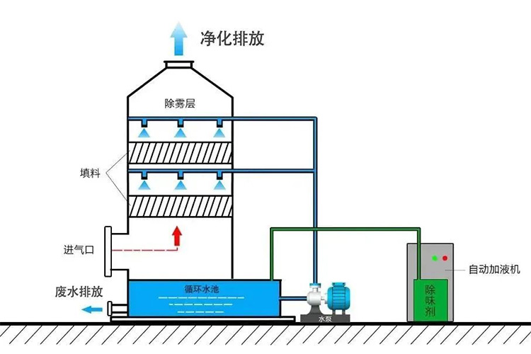 噴淋塔又稱為洗滌塔、水洗塔,對于各種腐蝕性氣體凈化處理效果明顯,適宜用于處理酸堿廢氣。