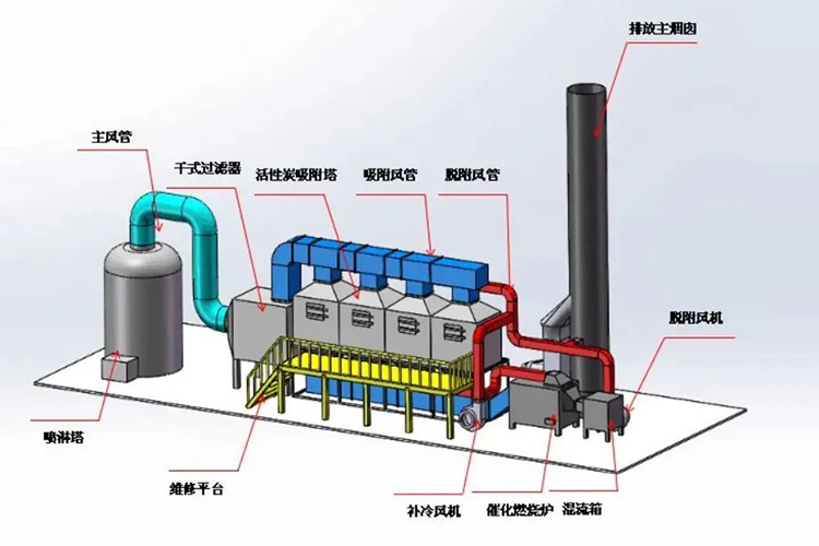 吸附法可以將廢氣中的有機(jī)成分與吸附劑進(jìn)行物理結(jié)合或化學(xué)反應(yīng),達(dá)到去污的目的。適宜于中低濃度且回收利用價(jià)值高的有機(jī)廢氣VOCs的處理,可應(yīng)用于凈化涂料、油漆、塑料、橡膠等化工生產(chǎn)排放出的含溶劑或有機(jī)物的廢氣。